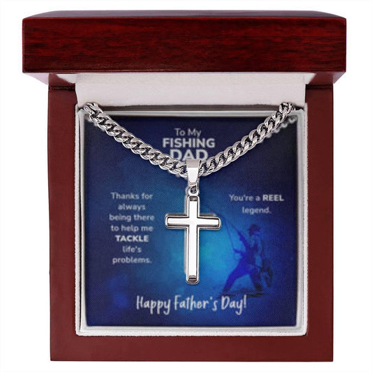 Fishing Dad Cross Necklace – Unique Gift for Fishermen